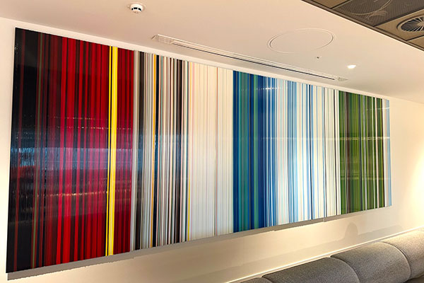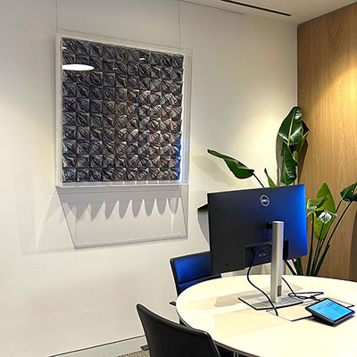 Over the following years, we continued to expand the collection, most recently commissioning new works for an additional meeting room and the corridor connecting reception to client areas. In this phase the office art curation centered on sustainability and visual continuity.