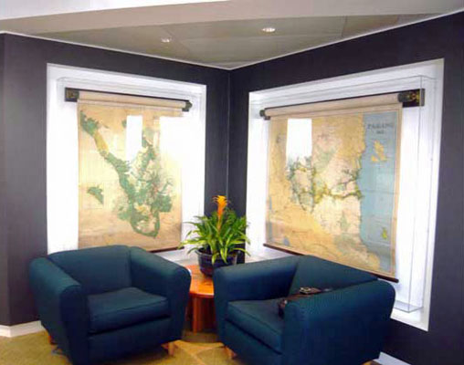 We advised the client to encase the delicate maps in a specially designed perspex box to include the existing batten frame work. These maps are now well preserved for the next 100 years.
