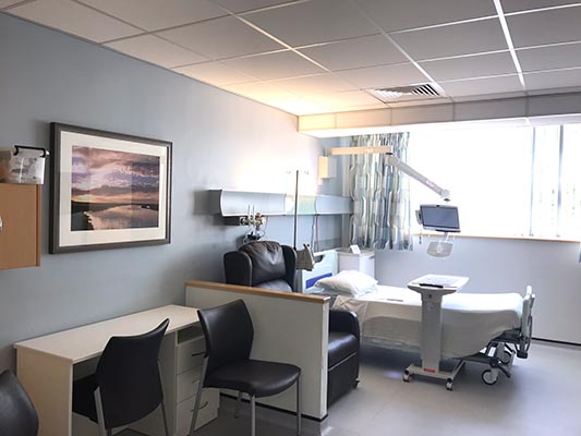 Virginia Grub worked closely with the staff of the Royal Marsden – Sutton to choose a suitable theme for each area. Floral and Woodland themes were chosen for the corridor and the reception area. For the patient rooms a coastal theme was chosen.